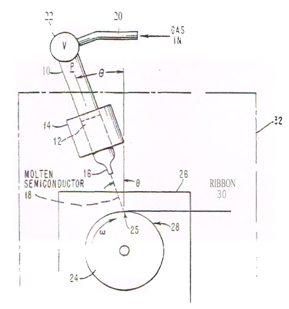 The invention provides a method for fabricating large grain (LG) semiconductor ribbons suitable for use in solar cells. A molten semiconductor material is discharged onto a rotating cylindrical surface. The method produces ribbons with an average grain size of about 20 microns and greater, and with a coherent oxide.