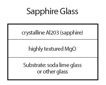 Solar-Tectic LLC presents sapphire glass for PV and display applications. This sapphire glass can be used as a substrate on which to deposit highly oriented semiconductor films for electronic devices, such as high efficiency solar cells and LEDs. Sapphire glass can also be used for display applications, such as device covers. It has a Mohs 8 hardness for anti-scratch purposes, including sand scratch resistance. The glass consists of a thin layer of crystalline Al2O3 on highly textured MgO on inexpensive glass (soda-lime and other kinds).